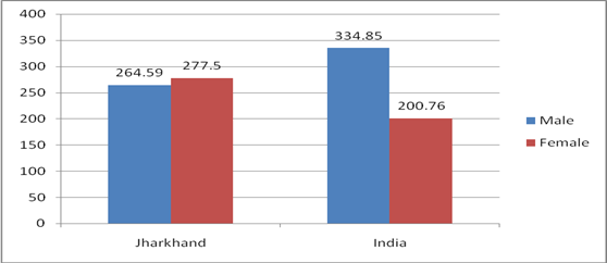 Low Labour Force Participation Rate among Females: Labour Force Participation Rate (LFPR) of women in Jharkhand is much less than that of the males. According to PLFS 2017-18, in Jharkhand, the LFPR of Females was 8.7 against 50.3% of that of the Males. This is an indication of preponderance of women in unpaid and unrecognised family work on one hand and lack of economic independence of women on the other.
