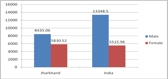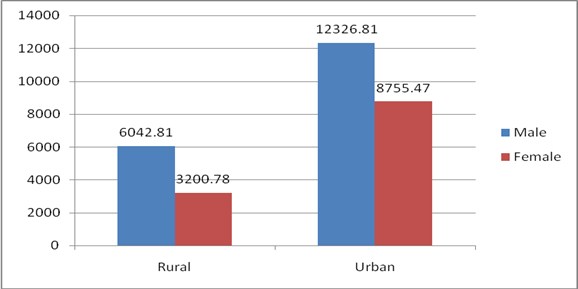 In Jharkhand, the average monthly gross earnings of the self employed in the rural areas are much less than that in the urban areas, for both the males and females. The gender disparity in average monthly gross earnings of the self employed in the rural areas, however, is much higher than that in the urban areas.