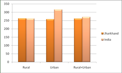 Figure 9 : Average wage earnings per day from causal labour work other than public work (in current weekly status) in Rural Jharkhand and Rural India for Male and Female