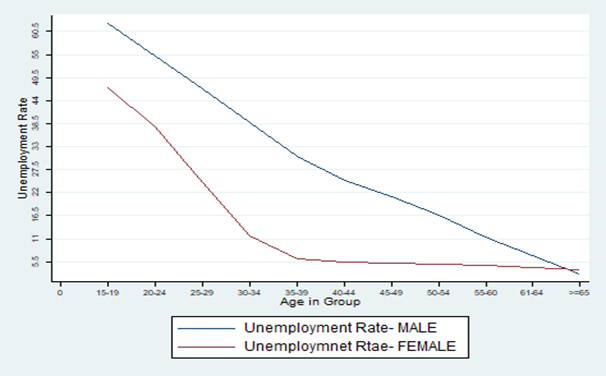 Fig gives us additionally understanding with respect to the weakness of ladies which shows that there is exceptionally high pace of joblessness among female at the age of 15-30. Because of variables like low expertise, scholastic attainment, culture norms, neighborhood impact this high pace of joblessness is common.