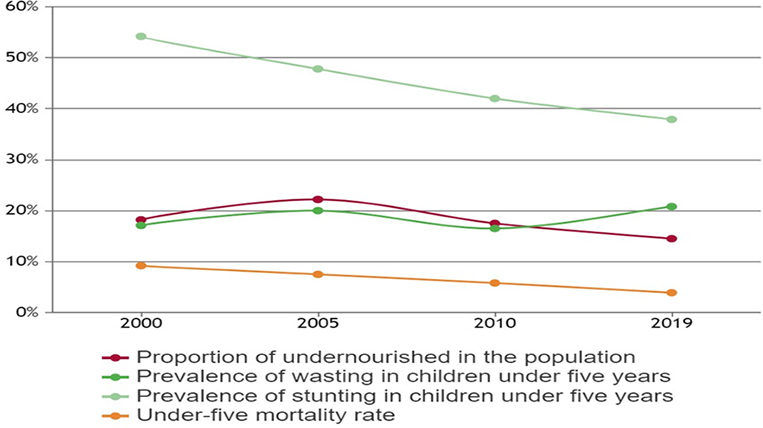 First, let’s have a look at the hunger issues in India. On Global Hunger Index India at 102th rank scores 30.3 with serious hunger issues in 2019. The proportion of undernourished in the population to be at 14.5%, prevalence of wasting in children under five years at 20.8%, Prevalence of stunting in children under five years at 37.9% and under five mortality rate to be at 3.9%.